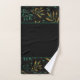 Patrón estético botánico repetido de ramas doradas y verdes sobre fondo negro con rayas.