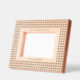 Este marco de madera adorable con orientación horizontal grabado por láser tiene un patrón de pequeños revisores con patrones de diamante y dos áreas de texto fáciles de personalizar encima y debajo de la ventana de fotos del marco.