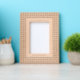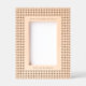 Este tierno marco de madera grabado con láser de orientación vertical tiene un patrón de pequeños revisores con patrones de diamante y dos áreas de texto fáciles de personalizar encima y debajo de la ventana de fotos del marco.