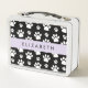Patrón lindo, divertido y adorable con patas blancas sobre fondo negro. Regalo moderno y moderno, perfecto para el amante del perro en tu vida. Personalice agregando su nombre, apodo, monograma o iniciales.
