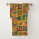 Patrón de diseño de mosaico raya botón de corazón toalla de baño verde amarillo conjunto