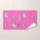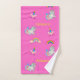 Unicornio y arcos con texto sobre el diseño de patrones de fondo rosado.