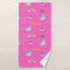 Unicornio y arcos con texto sobre el diseño de patrones de fondo rosado.