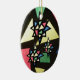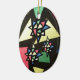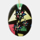 Este ornamento oval tiene 3 estrellas de vidrio manchado en un patrón de vidrio manchado.