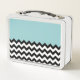 Elegante, elegante y sofisticado zigzag (chevron) en color blanco y negro sobre fondo azul. Regalo moderno y moderno, perfecto para el amante del zigzag en tu vida.