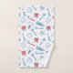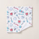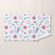 Toalla con tónica dental. Con ilustraciones coloridos de dientes, cepillos de dientes y diversas herramientas dentales.