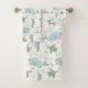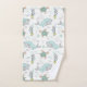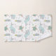 Un bonito patrón de ballena de verano y tortuga marina colocado sobre un conjunto de toallas de baño de fondo blanco.