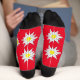 Un par de calcetines rojos con un patrón de flor de bonito edelweiss . También disponible en negro, verde y azul. © ArianeC Ilustraciones-Todos los derechos reservados