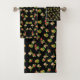 Flores exóticas coloridas y flores silvestres de islas tropicales sobre un patrón de fondo negro para celebrar el verano 2022