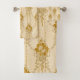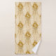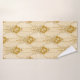 Patrón vintage elegante y de moda con conglomerados alternados de flores y hojas doradas con tránsitos diagonales y rayas verticales sobre fondo dorado.