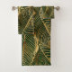 Dibujo moderno de hojas de oro de lujo, llenas de hojas brillantes de purpurina de oro fino de oro mano Diseño tropical dibujado, creando un inusual Relieve metalizado dorado patrón de follaje exótico asombroso arte tropical, sobre un moderno estilo de terciopelo con el fondo de color verde del bosque. Arte contemporáneo elegante y de moda en moda, dorado amarillo y colores verde esmeralda pintan la huella de la foto de la naturaleza.