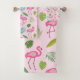 Este es un hermoso patrón de flamencos rosados con hojas tropicales verdes sobre fondo rosa claro. Las toallas de baño son de gran calidad