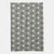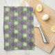 Toalla de cocina verde con un patrón floral de alios en morado oscuro, lavanda y blanco. Los aliados son plantas florecientes que incluyen la cebolla cultivada, el ajo, el escalleón, el shallot, puerros y más.