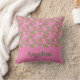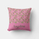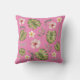 Cojín decorativo rosado. Patrón con flor rosa y amarilla.