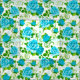 Patrón de rosas de estilo retro en azul blanco y verde.