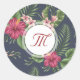 Hermoso patrón floral de Hibiscus sobre fondo oscuro. Pegatina redondeada sofisticada y femenina con monograma en forma redonda blanca. Puede cambiar fácilmente el texto (fuente, color, tamaño y posición) y el fondo de la imagen (tamaño y posición) haciendo clic en el botón personalizar. Bolso de favores, equipaje, etiqueta de equipaje y más...