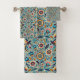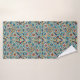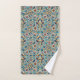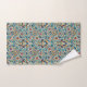 Un sencillo patrón de fondo de flores, hojas y salpicaduras de colores brillantes en un estilo de arte folclórico mexicano sobre un fondo azul.