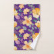 Este moderno juego de toallas de baño presenta un vibrante patrón floral amarillo en una rica base violeta. Haría el regalo perfecto para un amigo o un familiar.