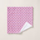 Este patrón de bonito muestra flores blancas sobre un fondo de rayas claras y rosas oscuras, con centros florales azules.