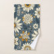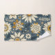 Un estampado floral vintage con flores crema y amarilla en un fondo azul.