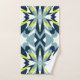 Este sorprendente patrón abstracto estalla con energía dinámica, con formas geométricas nítidas y curvas de onda fluida en azul marino, verde azulado y verde limón. La simetría reflejada crea un efecto caleidoscópico que se siente a la vez moderno y agobiante, mientras que la paleta de colores de alto contraste aporta un vibrante pop a la composición. Con sus formas audaces y su flujo rítmico, este diseño capta un sentido de movimiento y un estilo contemporáneo.