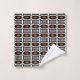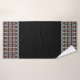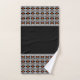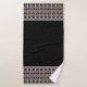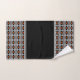 Moderno juego de toallas de baño con motivos geométricos abstractos en negro y naranja.