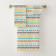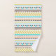 Toalla de oro purpurina falso, motivos geométricos azul acuático, blanco, negro y rosa chispeante.