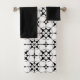 Modalidades modernas geométricas de diseño en blanco y negro con formas decorativas con simetría de bonito. Refresca tu baño con un diseño gráfico moderno. Toalla de baño gráfica y paño de lavabo negro sólido y toalla de mano.