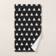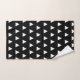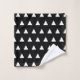 Toalla de baño triangular con motivos geométricos en blanco y negro.