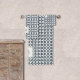 Patrón moderno y geométrico sin costuras de cuadrados pequeños, alternados en blanco y azul de pizarra, con puntos alternados en su interior. Plantilla de monograma dentro de un cuadrado blanco bordeado.