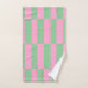 Patrón geométrico visualmente impactante con rayas verticales alternas rosa y verde. El diseño crea una estética audaz pero equilibrada, lo que la hace ideal para fondos de fondo, papel pintado, textiles y proyectos de diseño gráfico moderno. Los suaves tonos pastel de rosa y verde se complementan entre sí, con un estilo elegante y contemporáneo.