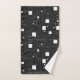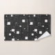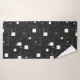 Esta imagen presenta un patrón geométrico moderno y abstracto en blanco y negro. Se compone de cuadrados y rectángulos de varios tamaños dispuestos al azar sobre un fondo negro. Algunas formas son de color blanco sólido, mientras que otras están delineadas, lo que crea un efecto de capas. Los puntos pequeños y los elementos en forma de píxel se dispersan por todos lados, añadiendo profundidad y textura. El diseño general es minimalista y transmite una estética digital o futurista.
