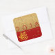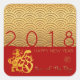 Papel dorado chino de perro en personalizable saludando al pegatina cuadrado rojo con un patrón decorativo japonés. Puede cambiar fácilmente el texto (fuente, tamaño, color y posición), el tamaño y la posición de la imagen y el color de fondo haciendo clic en el botón personalizar o personalizar. Tarjeta de saludo, postal, bolsa de regalo, adorno cuadrado y más... No olvides toda la colección... Perfecto para el Año Nuevo Chino 2018 o cumpleaños (personas nacidas en Año Perro). — "El perro (狗) es uno de los ciclos de 12 años de animales que aparecen en el zodiaco chino relacionado con el calendario chino. El Año del Perro está asociado con la 戌 del símbolo de la rama terrestre. El carácter 狗 se refiere al animal real mientras que 戌 se refiere al animal zodiaco. (...) Se puede decir que las personas nacidas dentro de estos límites de fechas han nacido en el "Año del Perro", aunque también llevan la siguiente señal elemental: 14 de febrero de 1934 - 3 de febrero de 1935 = Perro de la madera, 2 de febrero de 1946 - 21 de enero de 1947 = Perro de fuego, 19 8 a 7 de febrero de 1959 = Perro de la Tierra, 6 de febrero de 1970 a 26 de enero de 1971 = Perro Metalizado, 25 de enero de 1982 a 12 de febrero de 1983 = Perro de agua, 10 de febrero de 1994 a 30 de enero de 1995 = Perro de madera 9 de enero de 2006 - 17 de febrero de 2007 = Perro de incendio, 16 de febrero de 2018 - 4 de febrero de 2019 = Perro de la Tierra, 2 de febrero de 2030 - 22 de enero de 2031 = Perro Metalizado, 22 de enero de 2004222 = Perro de agua - " Wikipedia