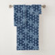 Toalla ambientada en una tradicional Asanoha japonesa, o estampado estrella en azul índigo oscuro delineado en azul chambre pálido