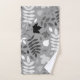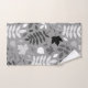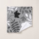 Hojas caídas otoñales en un diseño de patrón superficial en detalles negros sobre un fondo gris.