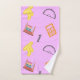 Calculadora matemática y símbolos en diseño de patrones de fondo rosado.