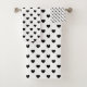 Juego de toallas de baño moderno con motivos de color blanco y negro.