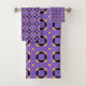 Diseño sencillo pero muy decorativo con colores púrpura, negro y amarillo.
