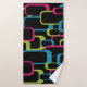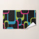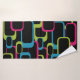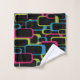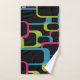 Un patrón cuadrado de inspiración retro fresco hecho en colores neones como rosa, verde y azul sobre un fondo negro
