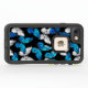 Mariposas realistas, azules y blancas, sin fisuras en el fondo negro.