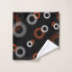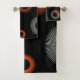 Un diseño geométrico fresco de naranja y de explosión de sol en blanco contra un fondo negro