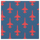 Un simple patrón repetido de T-38 rojas en azul oscuro hace de esta tela una gran elección para camisetas fiestas, bandanas, edredones y otros proyectos de costura de escuadrones de caza UPT.