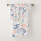 Oro rosa y marea azul marino con una colección de diferentes conchas náuticas sobre un fondo blanco.