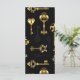 Patrón incomparable de llaves antiguas, doradas y de silueta sobre fondo negro.