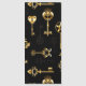 Patrón incomparable de llaves antiguas, doradas y de silueta sobre fondo negro.