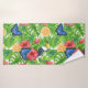 Patrón acuarela con tocan, mariposa, hibisco y hojas tropicales. Pinté elementos para el patrón con acuarelas en papel, luego los escaneé e hice el patrón en Illustrator