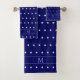 Patrón y monograma de estrellas blancas en el juego de toallas azul de la marina.