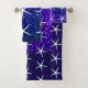 Diseñado con un fondo azul oscuro purpurinoso con tonos azul oscuro y azul oscuro y con estampados de estrellas.