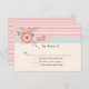 Tarjeta de respuesta boda de marfil bonito, con una colorida mezcla de flores en una pancarta rosa, en la parte superior. Una tónica de rayas rosa y blanca de coral y un marrón diminuto en la raya de puntos polka azul de huevo de robin, cruzan la parte superior de la tarjeta. Personalice el texto marrón para que se ajuste a sus necesidades. Se ofrecen deliciosos productos de mezcla y de boda.