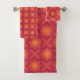 Disfruta de esta toalla de baño en diferentes patrones de círculos, cuadrados y estrellas en gradientes desde el color del año 2023 Viva Magenta hasta el Naranja Sun. Cambie la ubicación de los patrones por si mismo, utilizando la opción "Editar diseño".